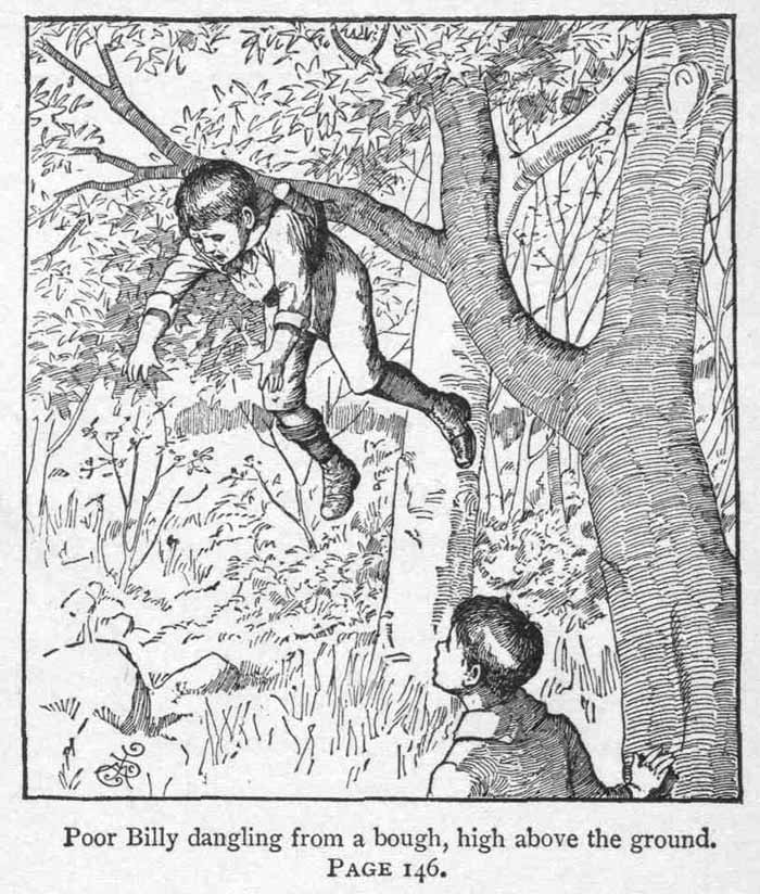 {Illustration: Poor Billy dangling from a bough, high above the ground.}