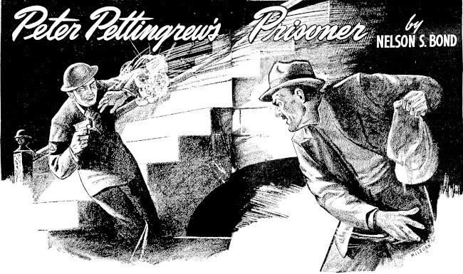 But—there was another Peter Pettigrew! An unknown and unsuspected Peter Pettigrew in whose veins raced the fire of heroes, behind whose mild and tawny eyes burned slumbering volcanoes. This was the man—the laughing, taunting, daring champion of derring-do—whom Peter dreamed himself to be. A questing knight with thews of steel and agile mind and tongue of rapier wit. This was the man whom Peter was when, in dead of night, his meagre body tossing restlessly on bunchy kapok, his untrammeled soul rode the magic highways of Dream-world in search of dark adventure. This man was Peter when, blackness engulfing a lean, tense figure straining forward in his movie seat, Peter's hungry heart followed a shaft of silver brilliance to identify itself with whatever solitary soul was worst beset by the encroaching forces of evil.