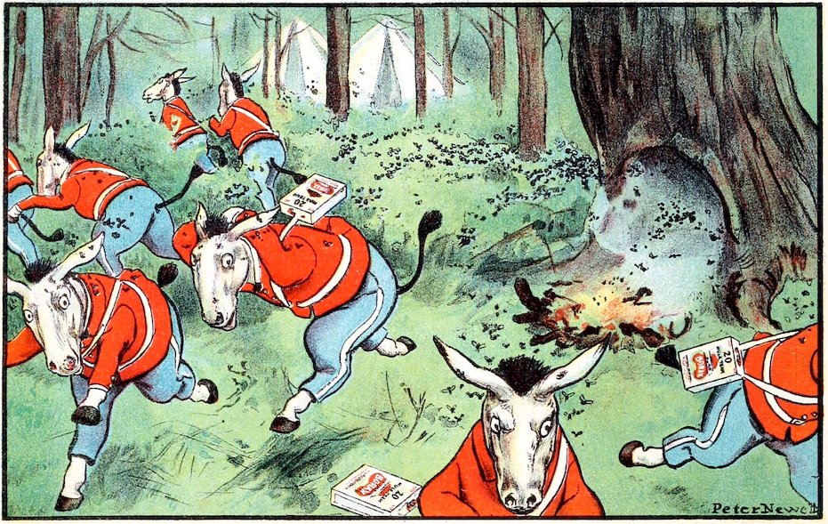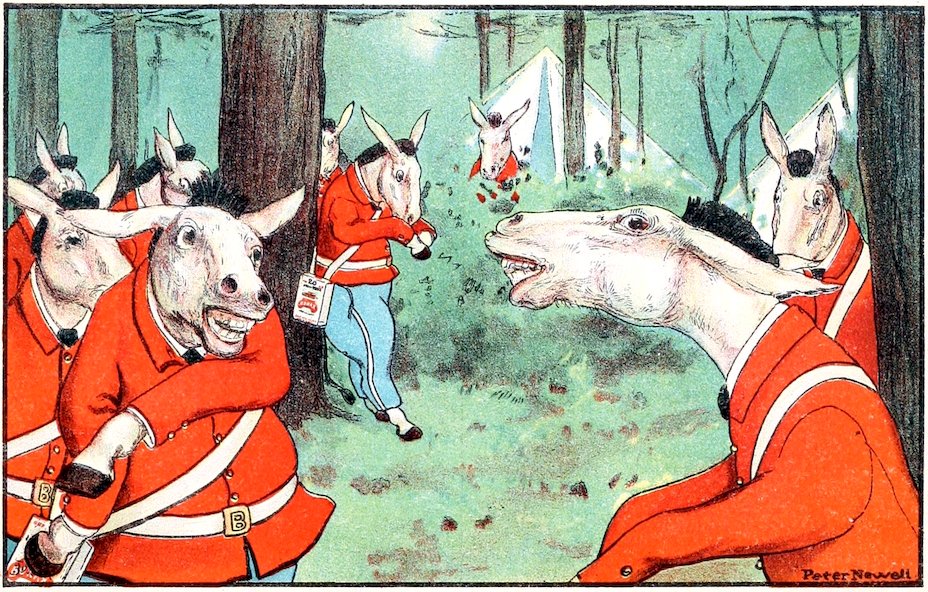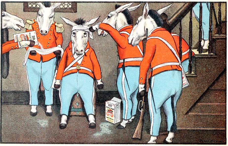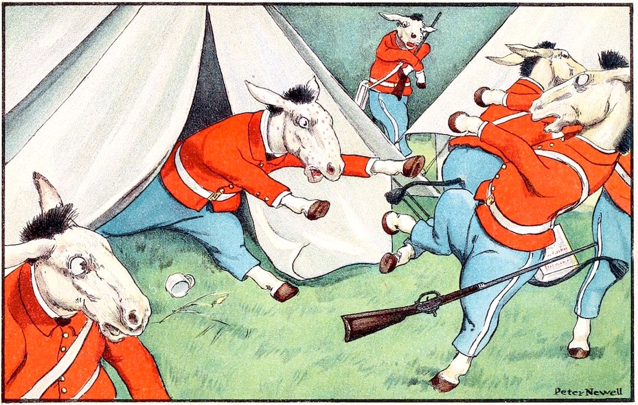 “A mule broke out with chicken-pox—broke out his tent, you see.”
