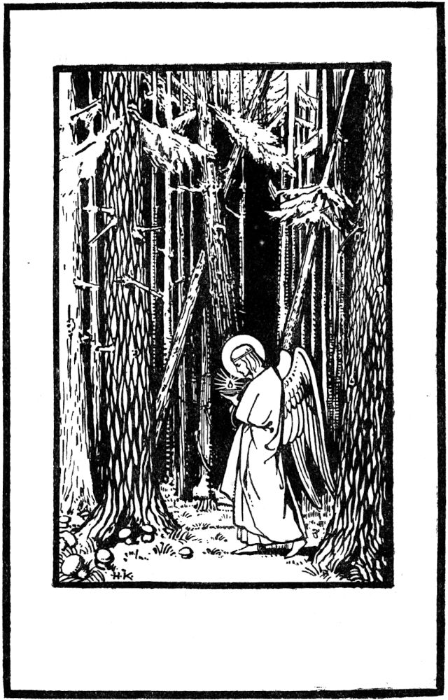 Wer löst mir das Rätsel? Durch die Nacht hindurch hat es mich verfolgt, und wenn mein Weg so fortläuft, wie er in Lage begonnen hat, da werde ich mir das Schlafen abgewöhnen und gleichfalls herumgeistern. Aber nicht in der Ruine, sondern im Märchenwald. Der hat mir’s angetan. Doch Vater und Sohn Nordstamm dürfen mich nicht auf meinen weiteren Forschungsfahrten begleiten, sie sind zu[24] nüchtern und bodenständig. Und wo ich ein Wurzelweib sehe mit drohend erhobenem Arm, das mir den Weg verwehren will, da sehen sie einen überständigen Baum, der gefällt werden muß. –