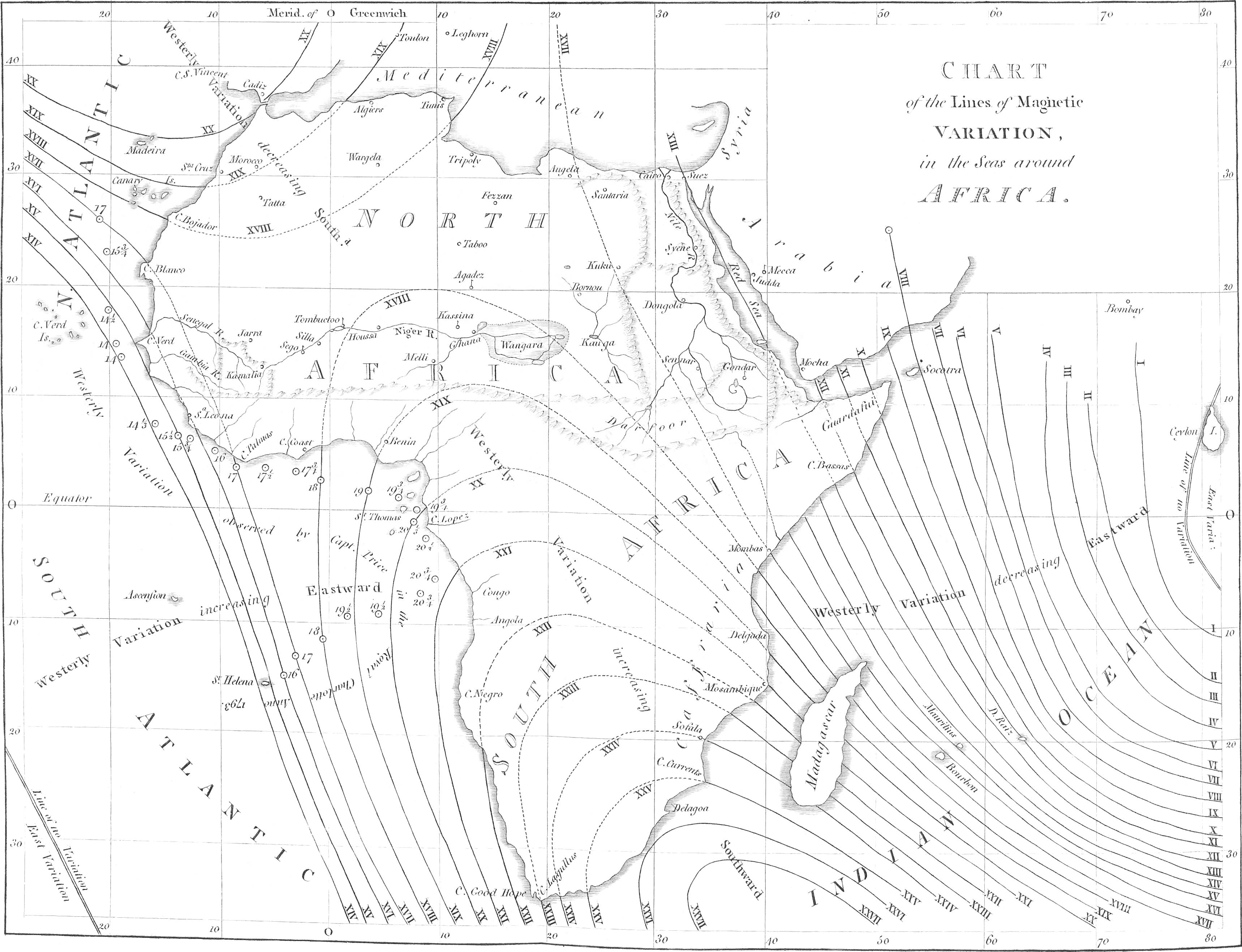 Immediately after my return from Africa, the acting Committee of the Association,[1] taking notice of the time it would[viii] require to prepare an account in detail, as it now appears; and being desirous of gratifying, as speedily as possible, the curiosity which many of the Members were pleased to express concerning my discoveries, determined that an epitome, or abridgment of my travels, should be forthwith prepared from such materials and oral communications as I could furnish, and printed for the use of the Association; and also, that an engraved Map of my route should accompany it. A memoir, thus supplied and improved, was accordingly drawn up in two parts, by Members of the Association, and distributed among the Society: the first part consisting of a narrative, in abstract, of my travels, by Bryan Edwards, Esq.; the second, of Geographical Illustrations of my progress, by Major James Rennell, F.R.S. Major Rennell was pleased also to add, not only a Map of my route, constructed in conformity to my own observations and sketches (when freed from those errors, which the Major’s superior knowledge, and distinguished accuracy in geographical researches, enabled him to discover and correct), but also a General Map, shewing the progress of discovery, and improvement in the Geography of North Africa; together with a Chart of the[ix] lines of magnetic variation, in the seas around that immense continent.