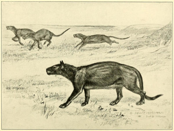The western portion of North America has preserved a marvellous series of records of the successive assemblages of animals which once dwelt in this continent, and in southernmost South America an almost equally complete record was made of the strange animals of that region. For the last half-century, or more, many workers have coöperated to bring this long-vanished world to light and to decipher and interpret the wonderful story of mammalian development in the western hemisphere. The task of making this history intelligible, not to say interesting, to the layman, has been one of formidable difficulty, for it is recorded in the successive modifications of the bones and teeth, and without some knowledge of osteology, these records are in an unknown[xii] tongue. To meet this need, Chapter III gives a sketch of the mammalian skeleton and dentition, which the reader may use as the schoolboy uses a vocabulary to translate his Latin exercise, referring to it from time to time, as may be necessary to make clear the descriptions of the various mammalian groups. Technical terms have been avoided as far as possible, but, unfortunately, it is not practicable to dispense with them altogether. The appended glossary will, it is hoped, minimize the inconvenience.