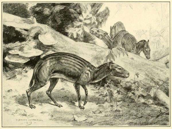 It is a pleasure to give expression to my sincere sense of gratitude to the many friends who have helped me in an unusually laborious undertaking. Professor Osborn and Dr. Matthew have placed at my disposal the wonderful treasures of the American Museum of Natural History in New York and in the most liberal manner have supplied me with photographs and specimens for drawings, as well as with information regarding important discoveries which have not yet been published. Dr. W. J. Holland, Director of the Carnegie Museum in Pittsburgh, has likewise generously provided many photographs from the noble collection under his charge, kindly permitting the use of material still undescribed. To Professor Charles Schuchert, of Yale University, I am also indebted for several photographs.