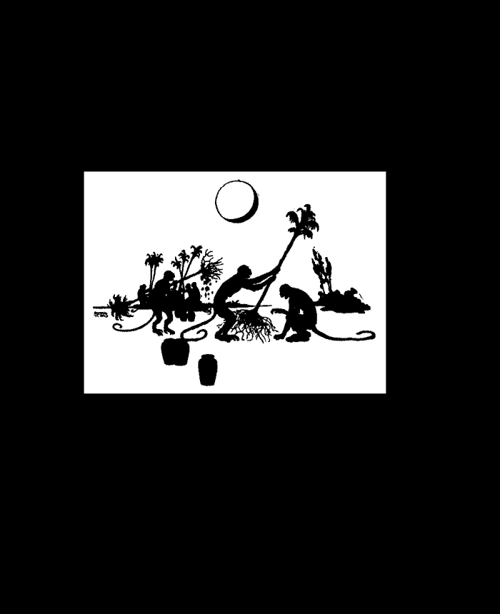 "There is something strange here. These pearls," thought he, "were lost in the garden. There was a strong guard at the gates, so that no one from the outside could get into the garden. On the other hand, there are hundreds of Monkeys here in the garden. Perhaps one of the Girl Monkeys took the string of pearls."