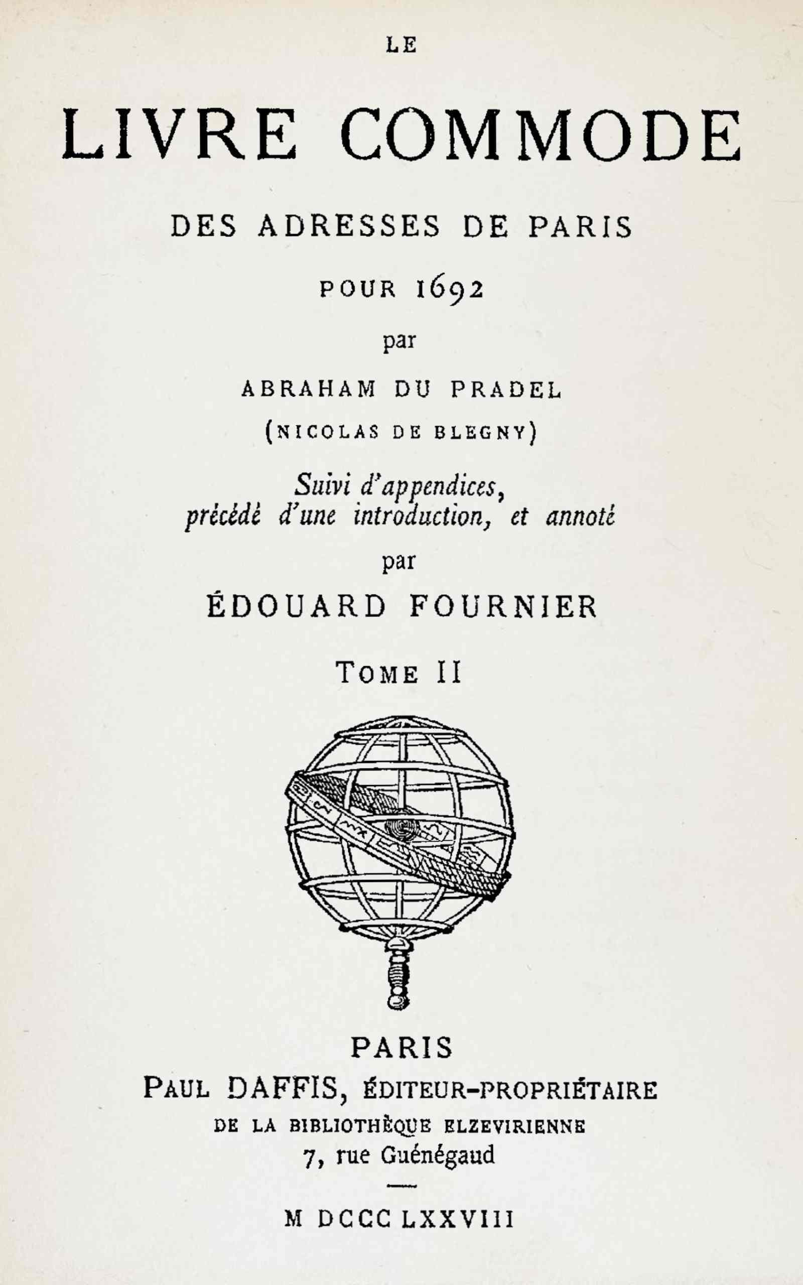 Title: Le livre commode des adresses de Paris pour 1692, tome 2/2