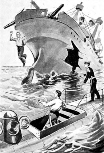 The Holland XI. was run in close to the wreck and the Frenchman was told to drop into the water.