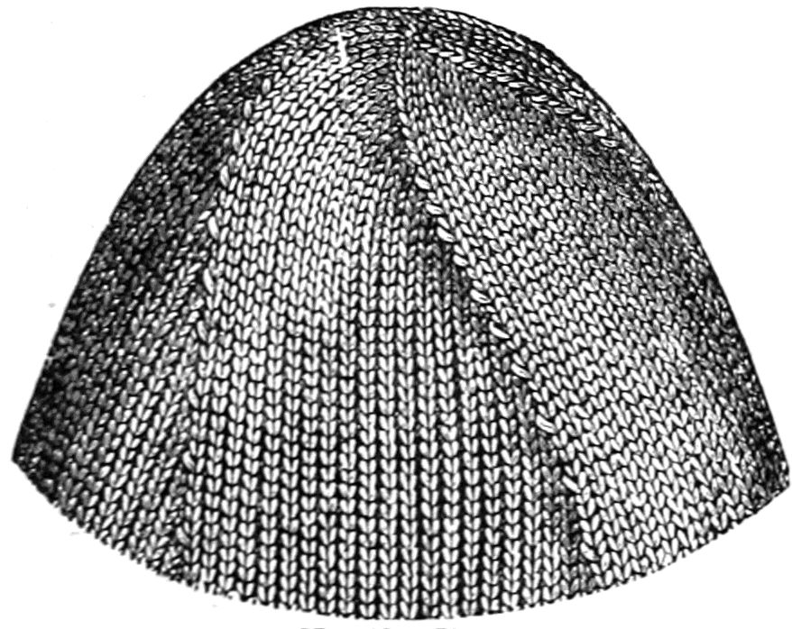3d row.—Plain; but in the “make 2” of preceding row knit 1 plain, 1 purl.