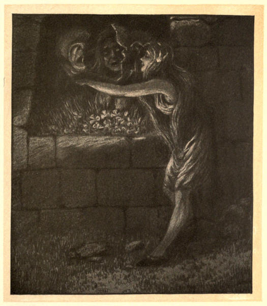 “Keth, darlin’,” said she, “’tis the country of the Badb an’ all the Dedannan furies, where the terrible Banshees are only the[22] least of the bad fairies. They will have your body an’ your soul.” An’ then she whispered: