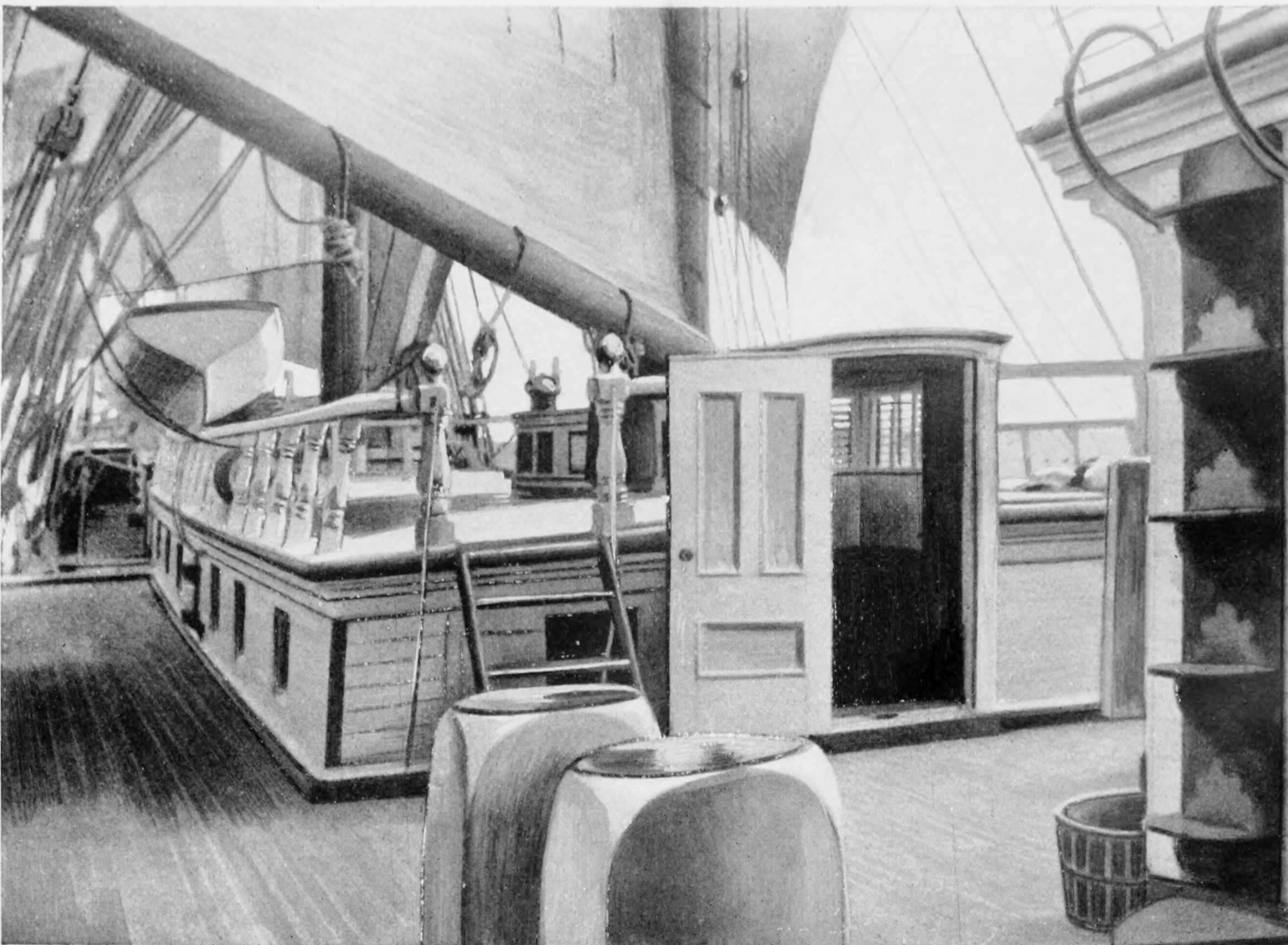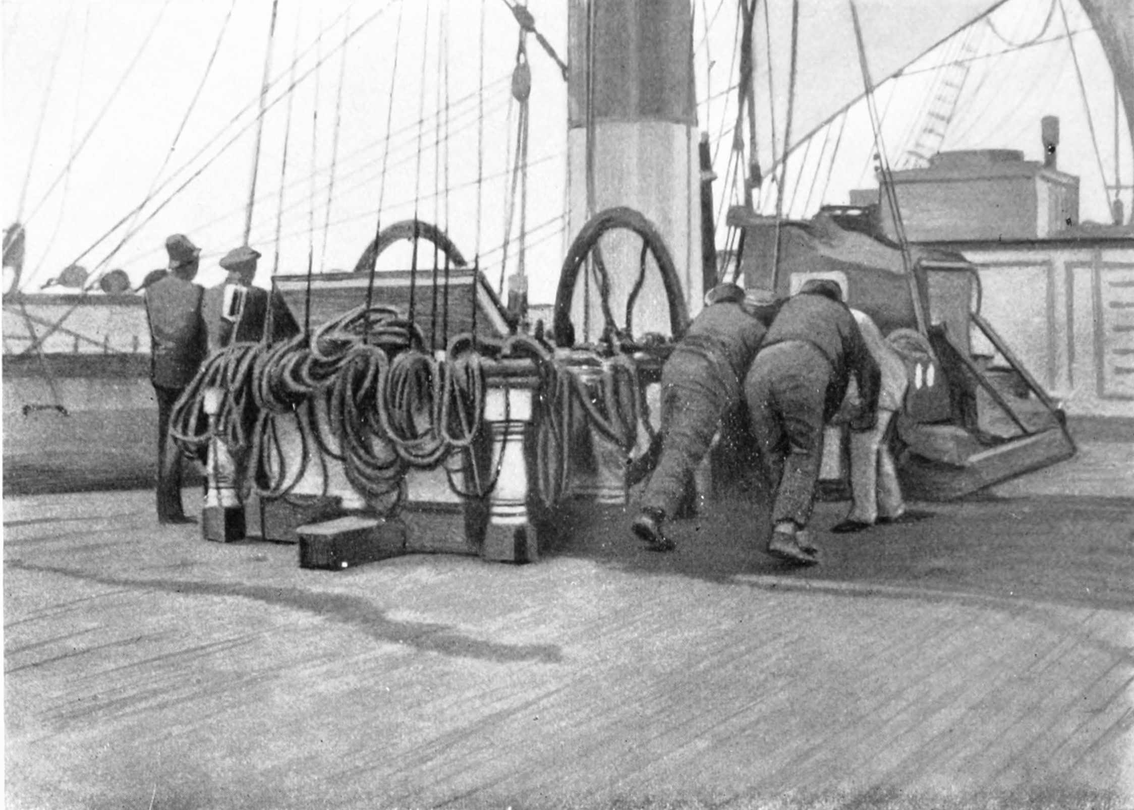 Last Sunday, as I was talking to some of the men forward, Broadhead spoke of the Yellowstone Park, and he chanced to mention that a friend of his had spent his honeymoon in that delectable locality, adding that, of course, everything looked particularly rosy even for the Yellowstone. Conversation then changed, when all at once I found the eyes of Jimmie Rumps fixed upon me, and a moment later he said, wistfully and earnestly, “I should think it must be just grand to go on a honeymoon.” Rumps, it might be added, would make an excellent cabin-boy on a yacht; but as bosun of a large ship, it would be difficult to find one more thoroughly incompetent than he is. There are at least a dozen of the men before the mast who are far better sailors than he, and seamanship is a sine qua non in a bosun as well as in a second mate.