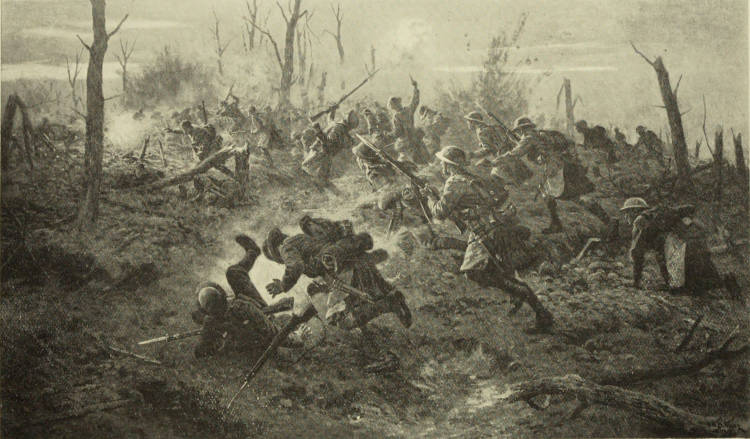 “The London Regiment and the Royal Fusiliers fought this battle, and not far from them were the Artists’ Rifles—the dear old ‘Artists,’ who, in the old volunteer days, looked so dandy in their grey and silver across the lawns of Wimbledon. They suffered yesterday in hellish fire, and made heavy sacrifices to prove their quality. It was a fight against the elements, in league with the German explosives, and it was a frightful combination for the boys of London and the clean-shaven fellows of the Naval Brigade.”