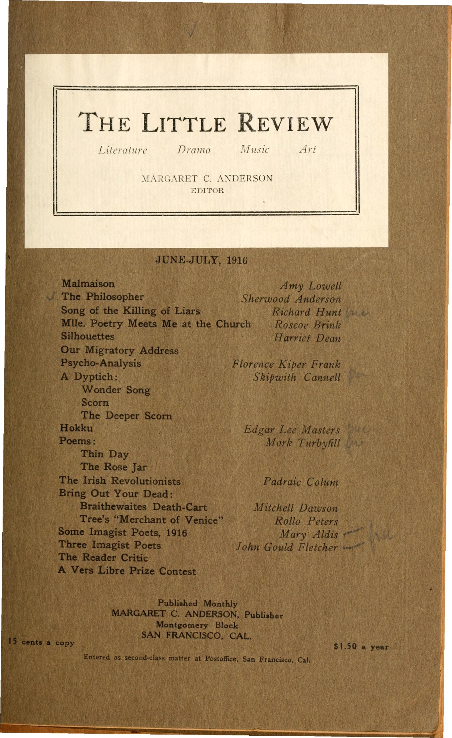 Title: The Little Review, June-July 1916 (Vol. 3, No. 4)