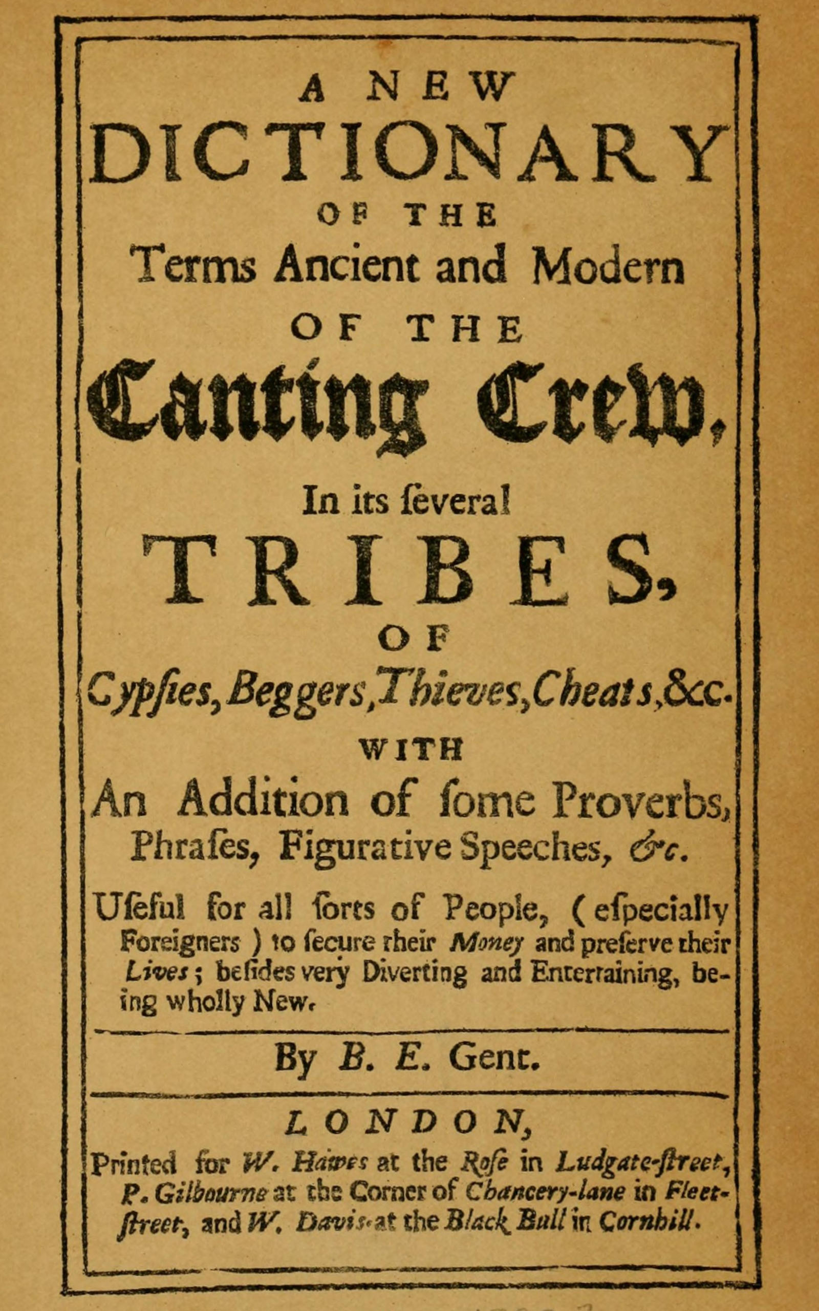 Title: A new dictionary of the terms ancient and modern of the canting crew in its several tribes of gypsies, beggers, thieves, cheats, &c.