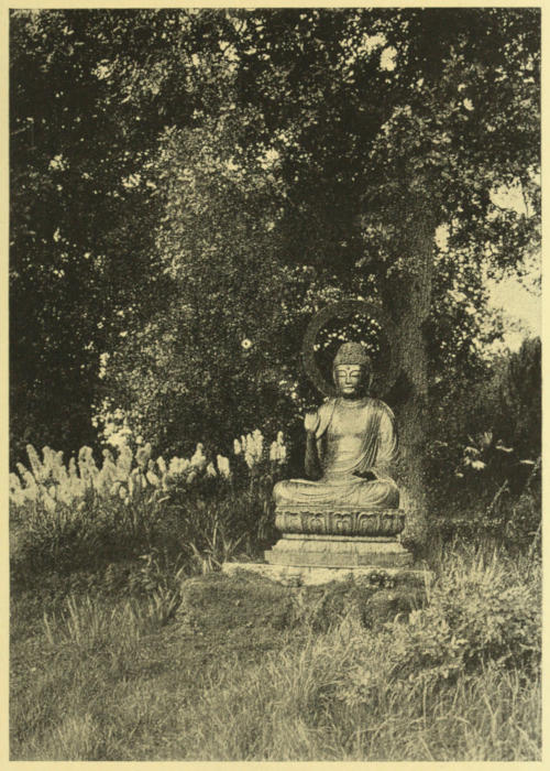 “You are Orpheus, with his lute moving the rocks and stones! I shall work all my conceits into your plan, and am now proceeding to my garden shrine to meditate on it. I will try to make a picture of the Veluvana, the bamboo garden which was the first Vikara or monastery of Buddha and his disciples. There I will sit, and, looking on the[xvi] great statue of Buddha in meditation, I shall begin to arrange all sorts of wild imaginings which may come into my crazy brain.”