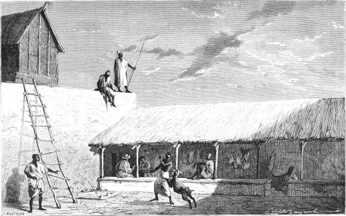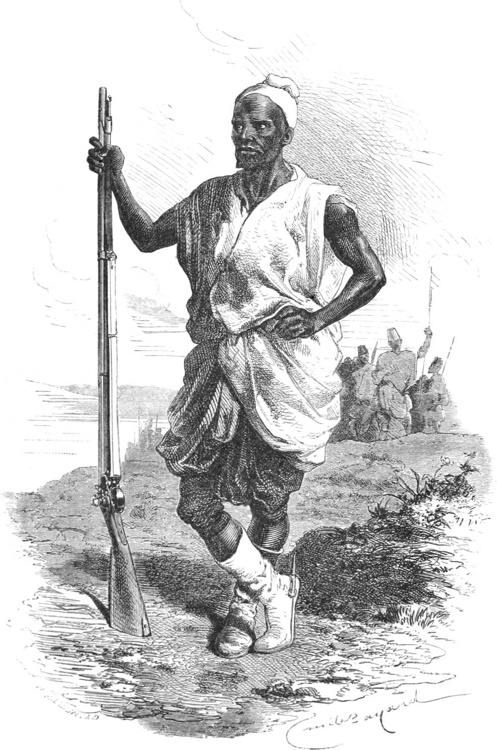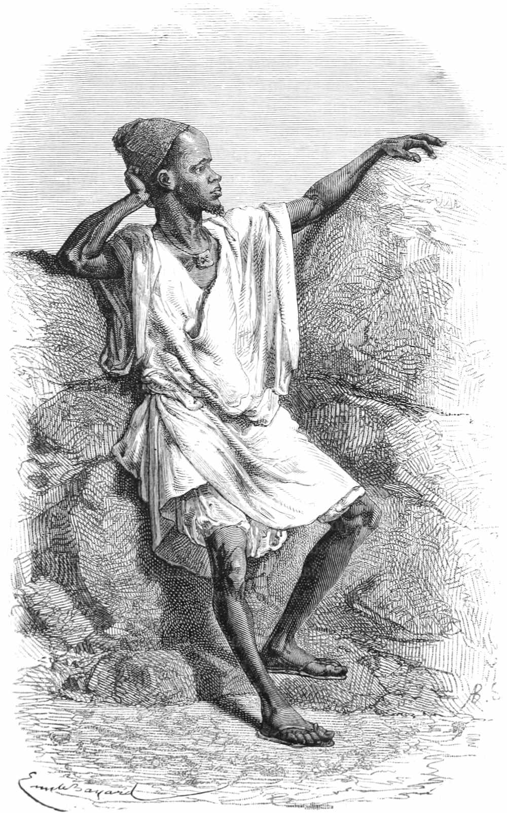 Le 10 juillet nous étions à Gorée, le 12 à Saint-Louis, et je fus tout de suite détaché à terre pour faire les études nécessaires à l’entreprise d’un tel voyage. J’avais déjà servi cinq ans au Sénégal et deux ans dans la station navale du littoral. Il était peu de points de la côte que je ne connusse. Un séjour de neuf mois au milieu des noirs du Haut-Fleuve à Makhana[3], et un pénible voyage d’exploration à l’oasis de Tagant, chez les maures Douaïch, m’avaient préparé. Je connaissais le caractère des noirs et des Maures, la manière de se conduire avec eux ; mais bien que possédant suffisamment l’histoire des voyages en Afrique, il me fallait relire Raffenel, Caillé, Mongo Park et même Barth, quoiqu’il ne parle pas des mêmes régions.