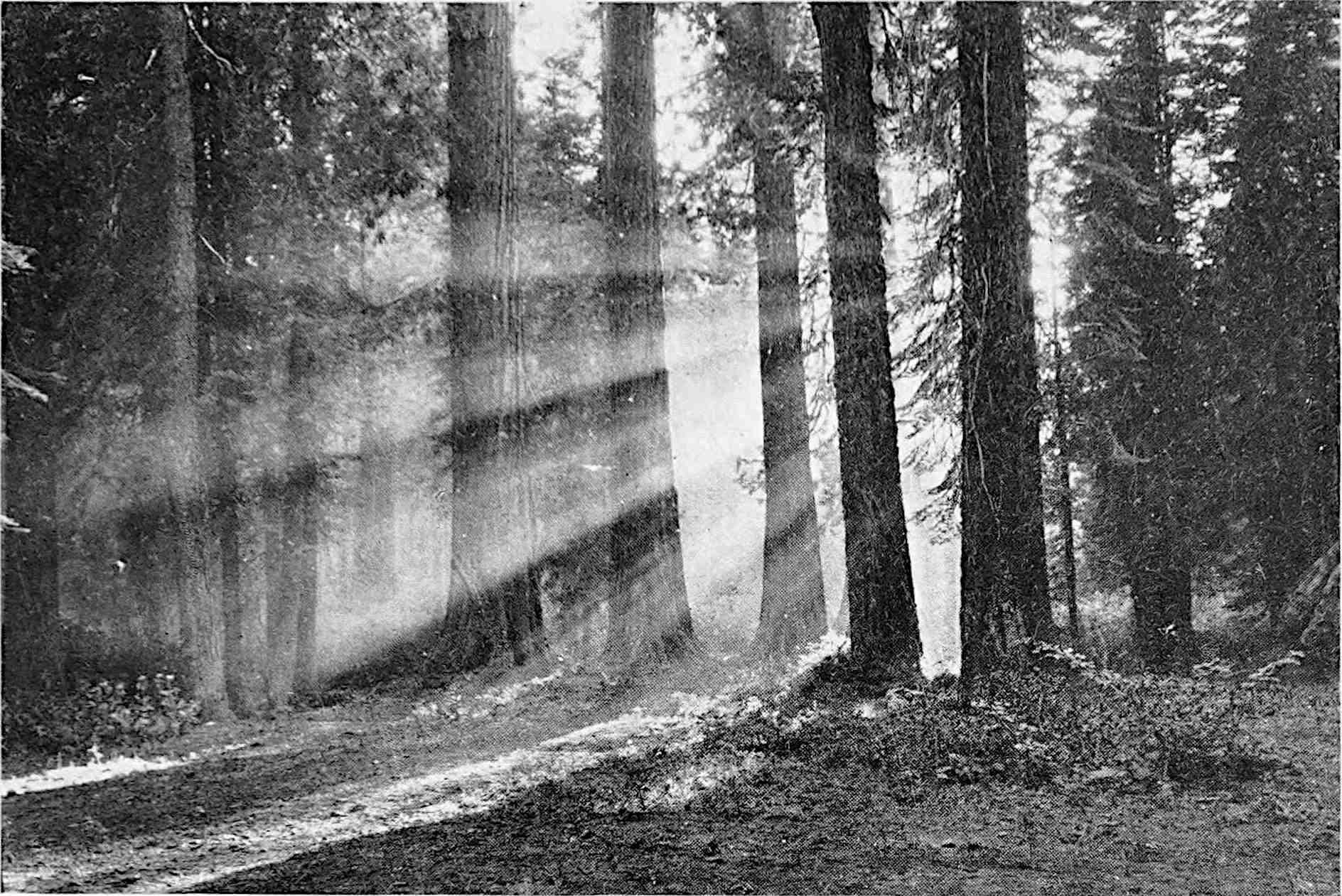 None escape the sacred influence of such a grove. None, save possibly the white man. Deer with eyes of soft innocence trip timorously through it; burly brown bear never shuffle heedlessly down its winding aisles; and rarely does the noisy, impudent jay muster sufficient courage to disturb its serenity. The Indian with his stone axe never harmed it, nor has the myth that he lighted his fires against its trunks, thus “wantonly destroying that which he was too rude to reverence,” 37been substantiated. It is only civilized man who violates such a sanctuary “just so long,” as John Muir so pithily expressed it, “as fun or a dollar can be gotten out of them.”