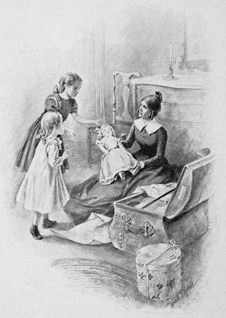 In due course they came to three giant ridges of sand. These stood in a clear place, and nobody in that region troubled himself about the geological cause of their existence in the heart of the woods. There they were, too tempting to be resisted. Melissa dropped her reticule, Tildy seriously followed her example, and Christine forgot her dress hooking in front and her claims to big girlhood. All three mounted the dunes, sat down, gathered their clothing close about their feet, and shot down the sides as if on invisible sleds. This queer sort of coasting was great fun. When it seemed expedient to adjourn, they shook the clean sand from their dresses, and the eldest and youngest untied their low shoes to turn them upside down. Matilda being barefoot and therefore free from such civilized cares, improved the time by taking an extra slide, which was too much for the other girls, so they tried it again.