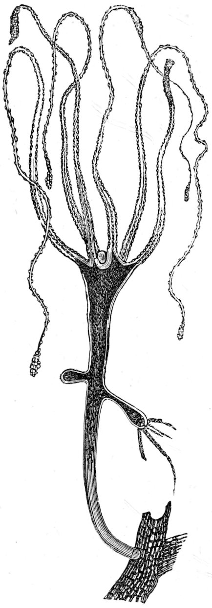 Almost all zoophytes live in the sea, but some few in fresh water; none are important agriculturally. The following belong to this sub-kingdom: 1. The Hydroid Zoophytes (Hydrozoa), including the medusæ of the North Sea, many of which are the sexual stage in the life history of fixed asexual polypes. The common Freshwater Polypes (Hydra viridis, fusca, etc.). 2. The Flower Polypes (Anthozoa), to which 255belong Red Coral (Corallium rubrum), and the reef-building corals (Astræa, Mæandrina, etc.). 3. The Sponges (Porifera), which are usually considered cœlenterates, though they possess no nettling organs (Freshwater Sponge = Spongilla, Bath Sponge = Euspongia officinalis).