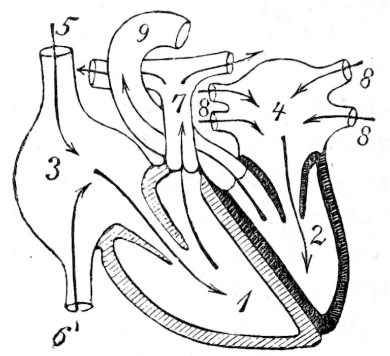 is the cause of the bladder-worm, producing sheep-gid, or sturdy (Cœnurus cerebralis). This tapeworm, which may live in the intestine of other animals besides the dog, has a circlet of hooks, is from fourteen to sixteen inches long, and consists of about two hundred joints. It generally lives in the intestine of the sheep-dog, in correspondence with which is the 238fact that the bladder-worm lives in the brain of young sheep. If a sheep-dog harbours Tænia cœnurus in its stomach, a sheep may very easily take up a joint with grass or heath. The joint is then digested in the sheep’s intestine, and the larva escapes from the egg. It bores through the wall of the sheep’s intestine, gets into the circulation, and is carried by the blood-stream to various parts of the body; it can only develop further, however, in the brain (or spinal cord). After the minute larvæ have reached the cavity of the cranium they move about on the outer surface of the brain, and dig out channels there till they find a suitable place for further growth. The larva now becomes a bladder-worm, which gradually grows, until it attains a size varying from that of a nut to that of a hen’s egg. It develops numerous tapeworm heads, even from three to four hundred. These become tapeworms if a sheep is killed by the parasite, and its head devoured by a dog or fox.