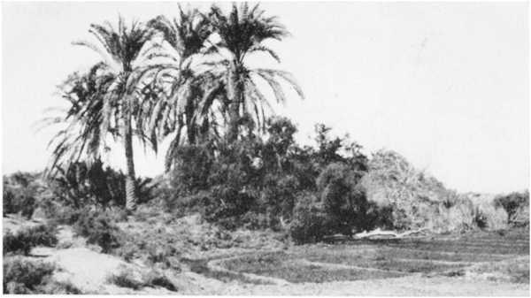Sheb Well is a pool of fairly good water in a shallow excavation at the foot of a clump of dom palms, half surrounded by sand-dunes and tamarisk mounds, 240 metres north-north-west of a fort; the latter occupies a fairly conspicuous position on a sandstone hill about 25 metres high. Another well, situated at the foot of a clump of dom palms about 11 kilometres farther north, is called Bir Terfau; this should not, of course, be confused with the Bir Terfawi already mentioned.