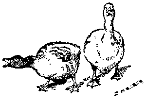Your Aunt Amy was walking slowly along on the lookout for some bird or animal who might be in the mood for story-telling, when she heard an angry hissing, which caused her to start in alarm, thinking a snake was in her path, and, to her surprise, she saw two geese who were scolding violently in their own peculiar fashion.