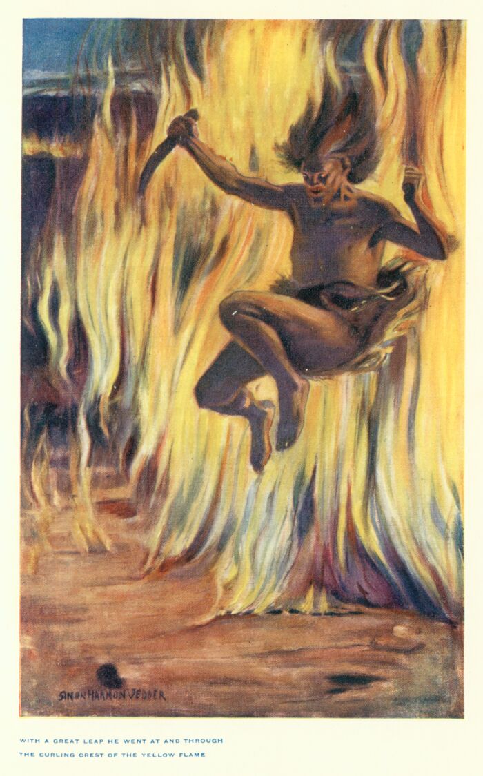 "WITH A GREAT LEAP HE WENT AT AND THROUGH THE CURLING CREST OF THE YELLOW FLAME!"