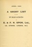A Short List of the Publications of E. & F. N. Spon, Ltd. June 1901