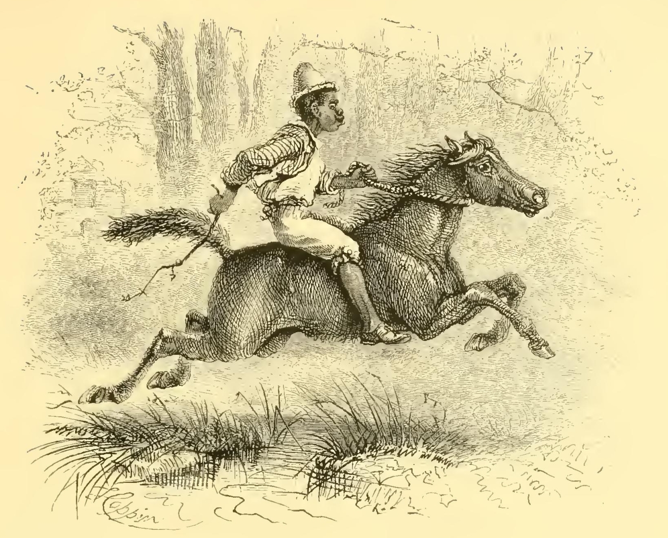 In this way, matters went on for some time without producing any material effect on the relative situation of the contending powers. On a fine autumnal afternoon Ichabod, in pensive mood, sat enthroned on the lofty stool whence he usually watched all the concerns of his little literary realm. In his hand he swayed a ferule, that sceptre of despotic power; the birch of justice reposed on three nails behind the throne, a constant terror to evildoers; while on the desk before him might be seen sundry contraband articles and prohibited weapons detected upon the persons of idle urchins, such as half-munched apples, popguns, whirligigs, fly-cages, and whole legions of rampant little paper gamecocks. Apparently there had been some appalling act of justice recently inflicted, for his scholars were all busily intent upon their books or slyly whispering behind them with one eye kept upon the master, and a kind of buzzing stillness reigned throughout the school-room. It was suddenly interrupted by the appearance of a negro in tow-cloth jacket and trowsers, a round-crowned fragment of a hat like the cap of Mercury, and mounted on the back of a ragged, wild, half-broken colt, which he managed with a rope by way of halter. He came clattering up to the school door with an invitation to Ichabod to attend a merry-making or “quilting frolic” to be held that evening at Mynheer Van Tassel’s; and, having delivered his message with that air of importance and effort at fine language which a negro is apt to display on petty embassies of the kind, he dashed over the brook, and was seen scampering away up the hollow, full of the importance and hurry of his mission.