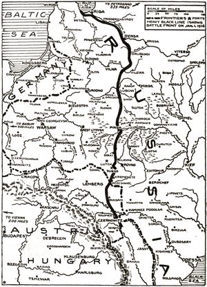 (p. 024) On April 21, 1915, came news of another trip to Warsaw by Zeppelins, a dozen persons being killed. Bombs fell in the center of the city and the post-office building was struck. A resumption of activity in that quarter was productive of raids, clashes in the air and Zeppelin alarms, such as were common in the western theatre, but on a lesser scale, as the Russians and Austrians possessed only a limited air equipment and the Germans were compelled to concentrate the bulk of their machines elsewhere.