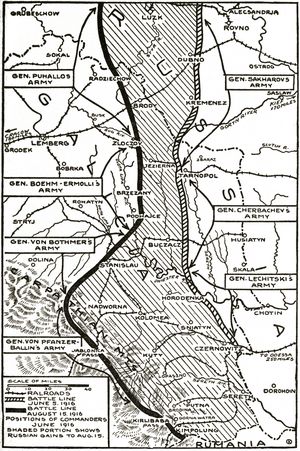 Pages 178/179: Words are missing between "cross-" and "of" in the sentence: Ten miles west of Kolki the Russians succeeded in cross- of Gruziatin, two miles north of Godomitchy, the small German garrison of which, consisting of some five hundred officers and men, fell into Russian captivity.