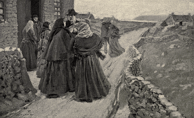 The minister came in with a smile, and he was placed in the best chair and made many times welcome. It was evident in a moment that he had brought a different spirit with him; the old world vanished away, and the men and women that a few minutes before had been so close to it suffered a transformation. As the minister entered the room they became 10 in a moment members of the straitest Christian kirk–quiet, hard-working fishers, and douce, home-keeping women. He said the night was bad and black, and spoke of the boats and the fishers in them. And the men talked solemnly about the “takes” and the kirk meetings, while some of the women knitted and listened, and others helped Matilda and Karen to set the table with goose and fish, and barley and oaten cakes, and the hot, sweet tea which is the Shetlander’s favorite drink.