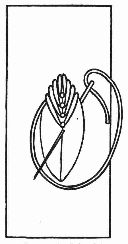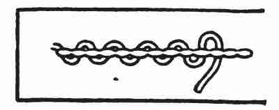 Stem stitch is too slow a method however to embroider school linens, and I would suggest using a substitute that has the effect and yet does not require the time. A row of outlining is made, and then turn the work back in the same manner, this time instead of working through the material, catch the places where the two successive stitches of the first row overlap (Figure 269.)
