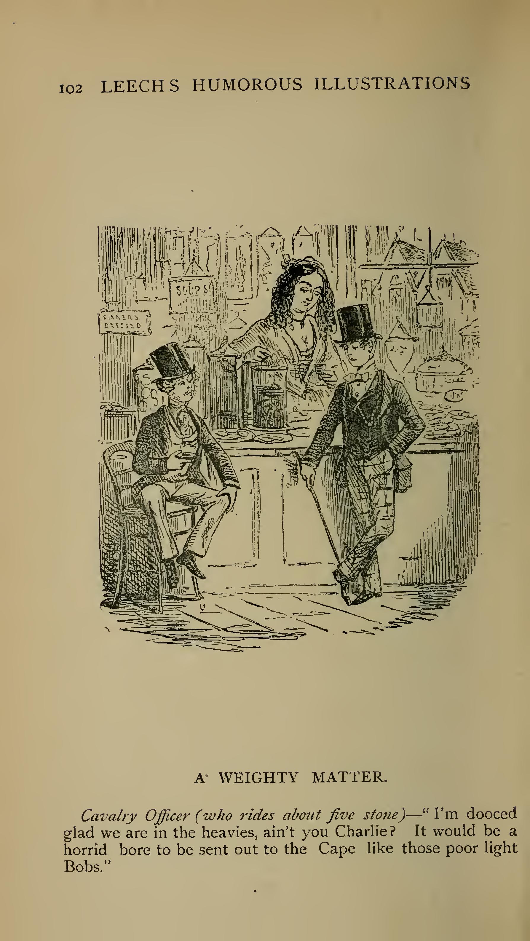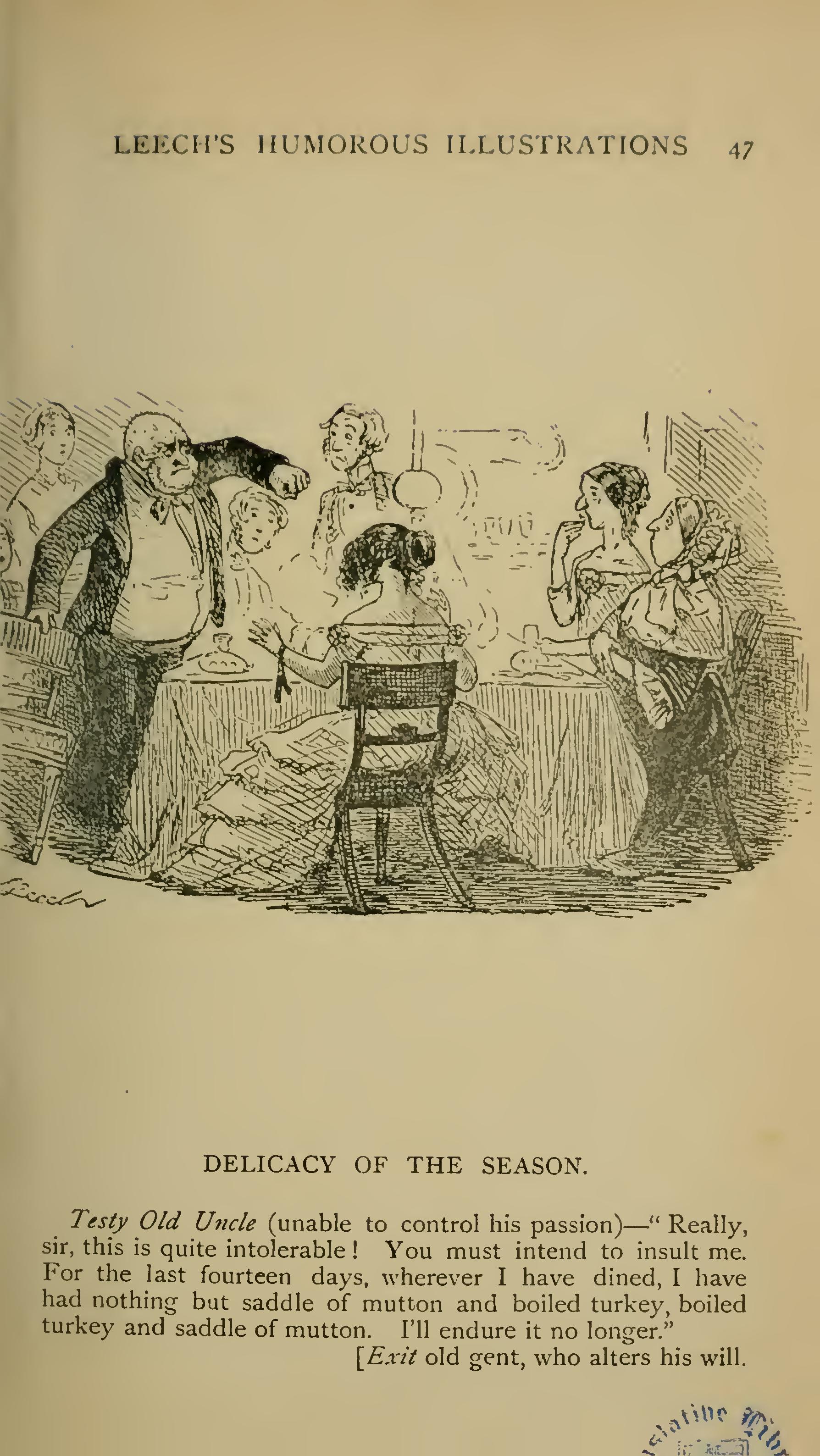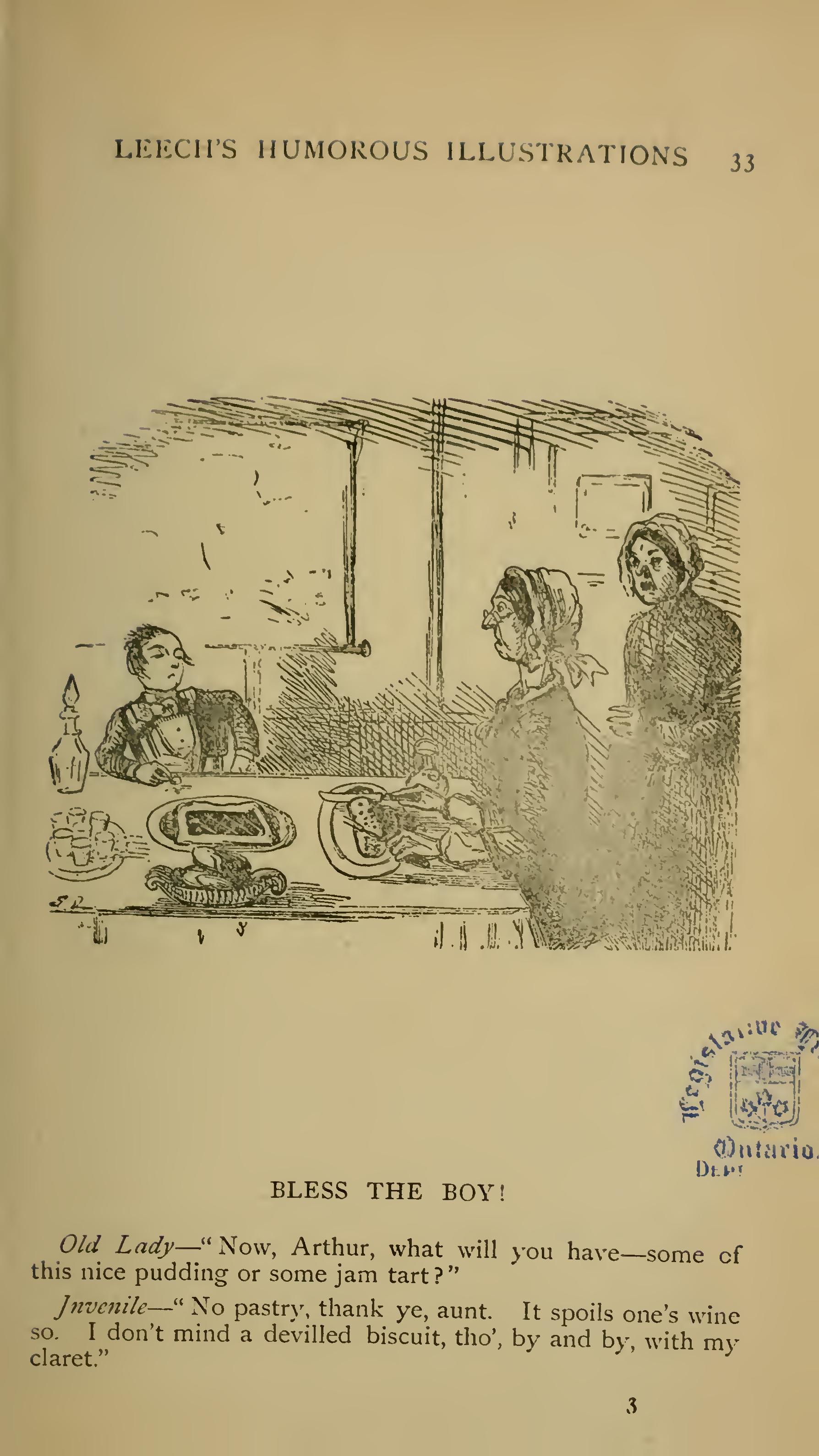 Alarming Symptoms after Having Boiled Beef and Gooseberry Pie....017 Great Want of Veneration.........................................018 Something like a Holiday.........................................019 Innocent and Amusing Tricks for Boys ............................020 Another..........................................................021 A London Gent Abroad.............................................022 Unfeeling Observation............................................023 Sailing versus Railways..........................................024 Innocence........................................................025 Never Satisfied..................................................026 Living in Hope...................................................027 Jealousy.........................................................028 A Puzzling Order.................................................029 How to get rid of a Gratis Patient...............................030 Hooking and Eyeing...............................................031 In for It........................................................032 Bless the Boy....................................................033 Pity the Sorrows of the Poor Police..............................034 Speculators......................................................035 Preparations for War.............................................036 Early Beginnings.................................................037 May difference of opinion never alter Friendship.................038 The Test of Gallantry............................................039 Interesting scene during the Canvas for Mr————...................040 Mal-apropos......................................................041 A little bit of Hunting..........................................042 Alarming.........................................................043 An Impudent Minx.................................................044 Very Acute.......................................................045 Men of Business..................................................046 Delicacy of the Season...........................................047 Unlucky .........................................................048 Nothing like warm Bathing........................................049 The Ruling Passion...............................................050 Different People have Different Opinions.........................051 The Alderman's Advice to his Son.................................052 An Omnibus Incident..............................................053 Very Proper Diet for Warm Weather................................054 Mr. Verdant's attempt at Bookmaking .............................055 Easily Satisfied.................................................056 The Chatalaine—a really useful Present...........................057 Domestic Bliss...................................................058 Rather Disappointing.............................................059 Domestic Bliss-Time 3.30 — Thermometer 30 degrees................060 A Dumb Waiter....................................................061 Murder Will Out..................................................062 Different People have Different Opinions.........................063 Advice Gratis....................................................064 Grandmamma is supposed to have given Tom some plums..............065 The Rising Generation............................................066 Sour Grapes......................................................067 Dog Days.........................................................068 Hall along of the Betting Offices................................069 A Romance of Roast Ducks.........................................070 Delicate.........................................................071 A Great Loss.....................................................072 Rather a Bad Look-out............................................073 Curious Effect of Relaxing Air...................................074 Oh! The Curtains.................................................075 A Left-handed Compliment.........................................076 Taken at his Word................................................077 The Opera........................................................078 Fishing off a Watering Place.....................................079 The Conservatory.................................................080 The Garret.......................................................081 Late Hours.......................................................082 No Place like Home when the family are at a Watering Place.......083 A British Ruffian................................................084 Very Considerate.................................................085 Filling up the Census Paper......................................086 Reward of Merit..................................................087 Doing a Little Bill..............................................088 Alarming.........................................................089 Domestic Bliss...................................................090 Returning from the Seaside—A Little Commission...................091 A Jolly Dog......................................................092 A Bon-bon from a Juvenile Party..................................093 Throwing stones through ice......................................094 True Respectability..............................................095 A Young Gentleman and Scholar....................................096 Perfect Sincerity; or Thinking Aloud.............................097 Perfect Sincerity; or Thinking Aloud.............................098 Perfect Sincerity; or Thinking Aloud.............................099 No Doubt.........................................................100 Very Low People..................................................101 A Weighty Matter.................................................102 A Cheap Day's Hunting, No. 1........................