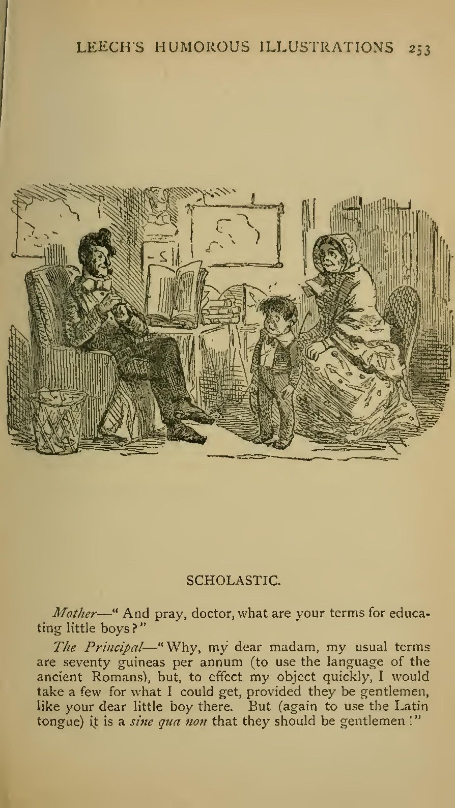 The father was a man of real ability, possessing considerable skill with the pencil, and from him, no doubt, the son inherited his special talent. And, again, on the mother's side there was relationship with the great scholar Richard Bentley, so that on both sides of the house young Leech had considerable advantages so far as mental heredity was concerned.