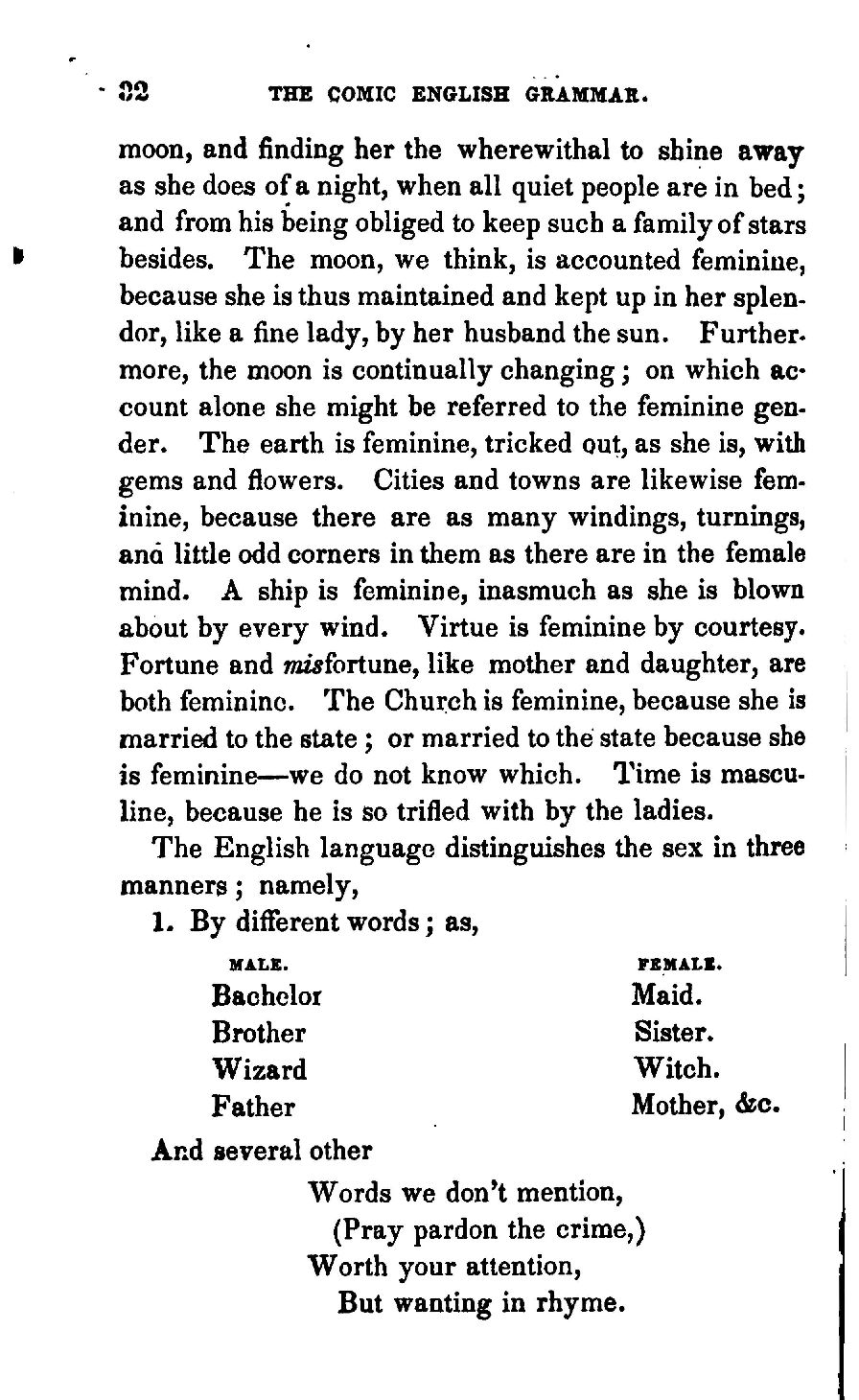 It is notorious that the above and greater enormities are perpetrated in spite of the number of Grammars already before the world. This fact sufficiently excuses the present addition to the stock; and as serious English Grammars have hitherto failed to effect the desired reformation, we are induced to attempt it by means of a Comic one.