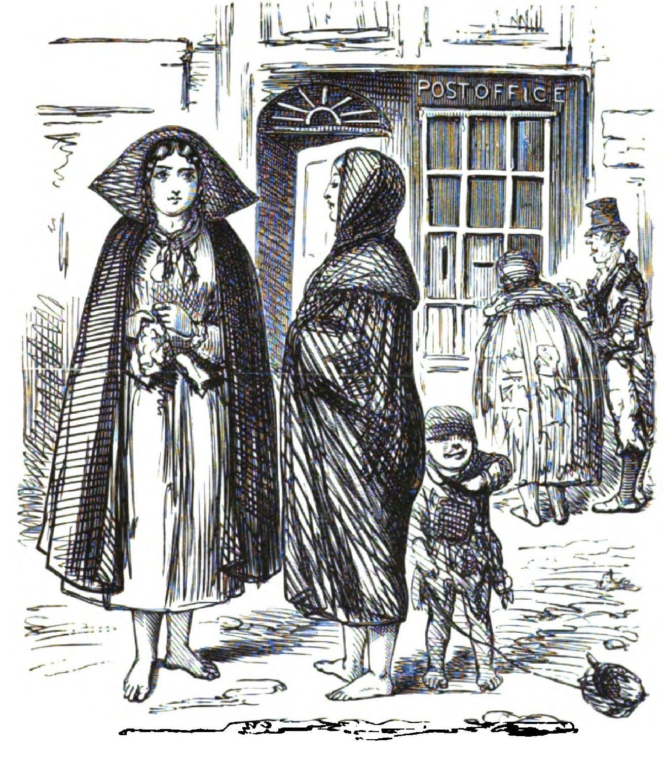 No, whatever may be the wrongs of Ireland no lover of the picturesque and beautiful would wish to see her re-dressed (so far as the ladies are concerned—the gentlemen might be improved); no one would desire to see her peasant girls in the tawdry bonnets and brass-eyed boots, which stultify the faces and cripple the feet of the daughters of our English labourers.