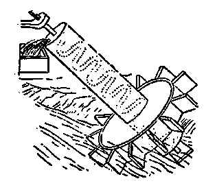 Fig. 217, which is reproduced from The Scientific American, exhibits an ingenious form of vacuum cleaner. It has recently been patented, and consists of a suction-fan operated by a water-motor that may be attached to the ordinary kitchen faucet. A tube is connected with the chamber of the suction-fan, and this terminates in a suitable nozzle, or foot plate, which may be moved over a carpet or rug to draw out the dust and dirt. One of the advantages of this system is that dirt drawn up by the suction fan can be carried away with the water down the kitchen drain.