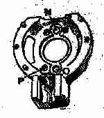 The principle of the "four-stroke-cycle" is shown [389] in Figs. 220 to 223. In Fig. 220 the piston A is just beginning the downward stroke, and the valve B is opened by the pressure of the atmosphere, or by mechanical means. The piston in descending causes a partial vacuum in the cylinder head or top C, which allows the atmospheric pressure on the surface of the gasolene in the carburetor to force some of the liquid through the spray hole, thence through the inlet-valve opening D, into the compression space of the engine cylinder. The suction of the piston does not bring in the explosive mixture of gas and air; it is the pressure of the atmosphere that causes the mixture of gas and air to rush into the cylinder. Just before the piston is at the extreme [390] end of the downward or outward stroke, the inlet valve B is closed by the spring shown, and the piston begins the first upward or "compression" stroke with both the inlet valve B and the exhaust valve E closed. The charge is being compressed when the piston is on its upward stroke, as shown in Fig. 221. Speaking generally, soon after the piston is over what is known as the "dead centre," and is about the position shown in Fig. 222, an electric spark is made to jump across two points of the sparking plug F; this ignites the mixture of gas and air (which is at a pressure of about 80 lb. per sq. in.), and the explosion causes the piston to descend on the power stroke. Just before the piston reaches the [391] bottom of the power stroke, the exhaust valve E, Fig. 223, opens, and remains open during the upward stroke. The momentum of the flywheels, etc., carries the piston upward, and thus forces out the burnt gases through the exhaust opening G, and from there to the silencer. Immediately the piston begins its next downward stroke, the inlet valve opens, fresh air is drawn in, and the cycle of operations is repeated as before. The illustrations show a magneto gear driven by the engine.