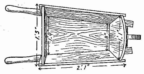 The bottom, sides, and ends were about three-quarters of an inch thick. Good white and red pine were used for the purpose. The stiles and rails of the bottom framework were mortised and tenoned together as shown at Fig. 213; these may be just stubbed together, or the tenons of the rails can go right [376] through the stiles. The most satisfactory job is to groove the sides and ends together, and put all together with oil paint in the joints. If the joints are painted before the framework of the barrow is put together, it will last for years; otherwise, being a [377] boy's wheel-barrow, it would likely often be forgotten and left out in the rain, and the joints getting wet would hasten decay. Two coats of good oil paint, Indian red, will give it a very nice appearance. This barrow, while not intended for heavy work, is capable of carrying quite a load. The wheel was cut out of a piece of plank about 11⁄2 inches thick, hooped [378] up with an iron tire made from heavy hoop iron. The axle was made of wood with a 3⁄4-inch round iron rod running lengthwise through it and projecting about three inches through on each end. The arbours or boxing, in which ran the ends of the round rod, were formed on the ends of the handle stiles, as may be seen in the illustration. The cost of all the materials for this really useful article was less than $1.50, all told.