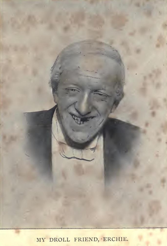 I suppose Mr MacPherson has been snibbing-in preachers in St Kentigern’s Kirk pulpit and then going for twenty minutes’ sleep in the vestry since the Disruption; and the more privileged citizens of Glasgow during two or three generations of public dinners have experienced the kindly ministrations of Erchie, whose proud motto is “A flet fit but a warm hert.” I think, however, I was the first to discover his long pent-up and precious strain of philosophy.