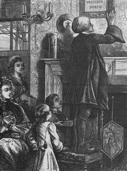 As we rose with the sun, so we never pursued our labours after it was gone down, but returned home to the expecting family; where smiling looks, a neat hearth, and pleasant fire were prepared for our reception. Nor were we without guests; sometimes Farmer Flamborough, our talkative neighbour, and often the blind piper, would pay us a visit, and taste our gooseberry-wine, for the making of which we had lost neither the recipe nor the reputation. These harmless people had several ways of being good company; for while one played, the other would sing some soothing ballad—Johnny Armstrong's Last Good-night, or the Cruelty of Barbara Allen. The night was concluded in the manner we began the morning, my youngest boys being appointed to read the lessons of the day; and he that read loudest, distinctest, and best, was to have a halfpenny on Sunday to put into the poor's-box.