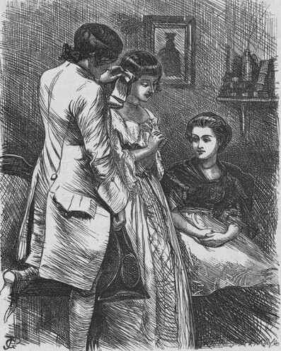 The first Sunday, in particular, their behaviour served to mortify me. I had desired my girls the preceding night to be dressed early the next day; for I always loved to be at church a good while before the rest of the congregation. They punctually obeyed my directions; but when we were assembled in the morning at breakfast, down came my wife and daughters, dressed out in all their former splendour; their hair plastered up with pomatum, their faces patched to taste, their trains bundled up into a heap behind, and rustling at every motion. I could not help smiling at their vanity, particularly that of my wife, from whom I expected more discretion. In this exigence, therefore, my only resource was to order my son, with an important air, to call our coach. The girls were amazed at the command; but I repeated it with more solemnity than before. "Surely, my dear, you jest," cried my wife; "we can walk it perfectly well: we want no coach to carry us now." "You mistake, child," returned I, "we do want a coach; for if we walk to church in this trim, the very children in the parish will hoot after us." "Indeed," replied my wife, "I always imagined that my Charles was fond of seeing his children neat and handsome about him." "You may be as neat as you please," interrupted I, "and I shall love you the better for it; but all this is not neatness, but frippery. These rufflings, and pinkings, and patchings, will only make us hated by all the wives of our neighbours. No, my children," continued I, more gravely, "those gowns may be altered into something of a plainer cut; for finery is very unbecoming in us, who want the means of decency. I do not know whether such flouncing and shredding is becoming even in the rich, if we consider, upon a moderate calculation, that the nakedness of the indigent world may be clothed from the trimmings of the vain."