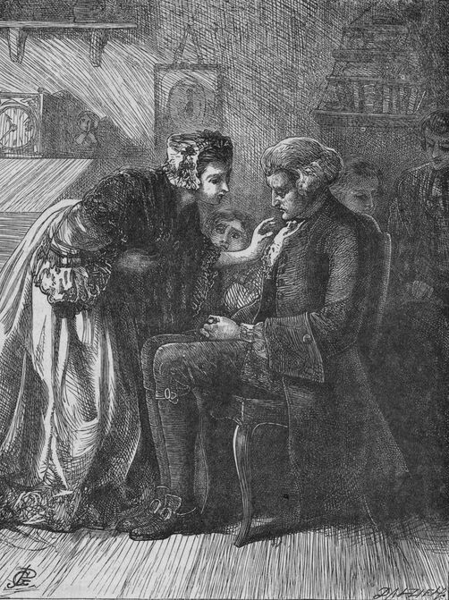 A small triumph, in the shape of an exhibition, worth some thirty shillings, induced the young awkward student to give a very humble kind of ball at his rooms. To this ball came an unexpected visitor in the shape of Wilder the tutor, who put the guests to flight, and publicly beat the host. Smarting under the disgrace, Goldsmith quitted the college, and was only induced, after a time, to return by the persuasions of his brother Henry, who brought about a reconciliation, or rather a truce, between Oliver and his tyrant. On the 27th of February, 1749, he obtained his B.A. degree, and, returning home, remained for a time idle and unemployed, looking out for the chance of a career. He presented himself for ordination and was refused; was a tutor in a private family, and left in consequence of a quarrel; was furnished with funds by Uncle Contarine to study law, lost his money, and appeared again at home destitute. At length, with some last assistance from the friendly uncle's purse, he started on a tour through Europe; travelling, not like the majority of British tourists in coach and on horseback, but on foot and alone, making his way from place to place, and studying men rather than science. Important, and rich in results for his whole future life, was this remarkable journey. And, among the most memorable of its effects was, that it suggested the poem of the "Traveller." Marvellously true were the views taken by the poor student of the various lands through which he passed; and remarkable were the words in which, in one of his early essays, he predicted the change that was coming upon France. Clearly and distinctly he heard the first far-off mutterings of the great revolutionary storm. He saw the growth and spread of the spirit of freedom among the people, and while others cried "peace" when there was no peace, he distinctly and clearly foresaw the great crash of revolution that was coming.