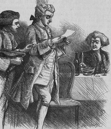 "Every day now began to strip Jack of his former finery: his clothes flew piece by piece to the pawnbrokers'; and he seemed at length equipped in the genuine mourning of antiquity. But still he thought himself secure from starving; the numberless invitations he had received to dine, even after his losses, were yet unanswered; he was, therefore, now resolved to accept of a dinner, because he wanted one; and in this manner he actually lived among his friends a whole week without being openly affronted."