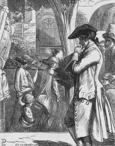 The place of our retreat was in a little neighbourhood, consisting of farmers who tilled their own grounds, and were equal strangers to opulence and poverty. As they had almost all the conveniences of life within themselves, they seldom visited towns or cities in search of superfluities. Remote from the polite, they still retained the primeval simplicity of manners; and, frugal by habit, they scarcely knew that temperance was a virtue. They wrought with cheerfulness on days of labour; but observed festivals as intervals of idleness and pleasure. They kept up the Christmas carol, sent true-love knots on Valentine morning, ate pancakes on Shrovetide, showed their wit on the first of April, and religiously cracked nuts on Michaelmas-eve. Being apprised of our approach, the whole neighbourhood came out to meet their minister, dressed in their finest clothes, and preceded by a pipe and tabor; a feast also was provided for our reception, at which we sat cheerfully down; and what the conversation wanted in wit was made up in laughter.
