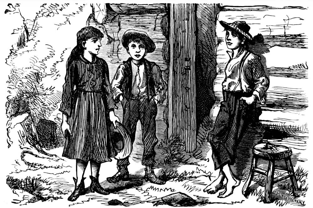 Three children stood in front of a rough log-cabin in a small clearing won from the surrounding forest. The country round about was wild and desolate. Not far away was a vast expanse of forest, including oaks, beeches, walnuts and the usual variety of forest trees.