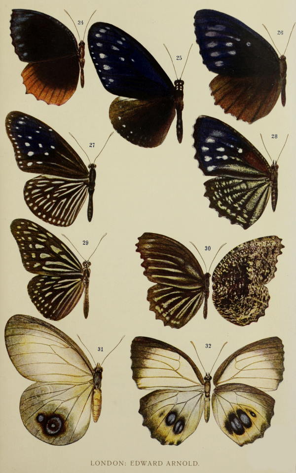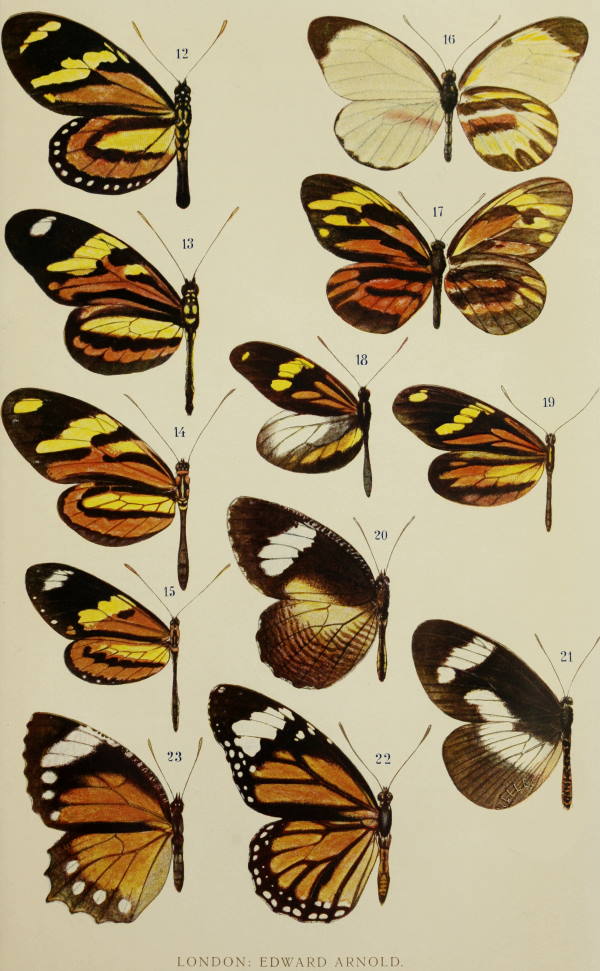 | 18. | Upper surfaces of Acræa egina, Papilio ridleyanus, and Pseudacræa boisduvalii | 102 |