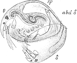 If these facts may be adduced in favour of a separation of the primary constituents at an earlier or later stage, we find even stronger proofs among the Ctenophores, Gastropods, Bivalves, and Annelids. In the last-named group Wilson has shown it to be probable that development is really a 'mosaic work,' as Roux and I had assumed. The older observations made by Chun at an earlier date on the Ctenophora, and the more recent experiments of Fischel on the same animals, prove the same thing for this group. In this case complete larvæ are easily distinguished from mere 'partial developments' by the number of the characteristic 'ciliated meridional rows' or ribs, which extend from one pole of the larva to another. In the complete larva there are eight of these, but in larvæ from one of the first two blastomeres (isolated) there are only four, and in those which have arisen from one of the first four blastomeres there are only two. If an ovum at the eight-cell stage can be successfully divided into separate blastomeres, each of these will form an 'eighth larva,' always with only one ciliated rib. Even in the succeeding sixteen-cell stage it could still be demonstrated that the substance responsible for the formation of the ribs only lies in particular places and always suffices only for eight ribs. The sixteen-cell stage consists of eight large cells and eight small ones, the 'macromeres' and the 'micromeres'; if an ovum at this stage be cut so that one piece contains five macromeres and five micromeres, a partial larva will develop which possesses only five ribs, while the larva from the other portion will have only three. But the localizing of the rib-determinants can be followed still further, for in larvæ in which individual micromeres have been displaced from their normal position there is a correlated displacement of the corresponding ribs, and a dislocation of their ciliated comb-plates. The determinants of the ribs must therefore lie in the micromeres, and we must conclude that at the antecedent division they were only imparted[Pg 409] to one daughter-nucleus, while the other, that of the macromere, did not receive this kind of determinant. Here then we have an example of dissimilar or differential division. Those who oppose this theory of qualitative division will hardly be likely to admit this, but will rather seek to maintain that 'external influences,' such as relative position, determine which cells are to give rise to the ciliated ribs and which are not. But the fact that artificial displacement of the micromeres leads to a disarrangement of the ciliated comb-plates, of which the ribs are made up, invalidates this suggestion, and at the same time overthrows the interpretation that it may be the cells which lie on particular meridians that are determined by this position to the production of ciliated plates. Obviously, the converse of this is true; those cells which contain the rib-determinants come to lie in the regular course of development in these eight meridians, and the cells lying between them, though of the same descent (from micromeres), contain no such determinants and therefore form no ribs. But if those cells which are equipped with rib-determinants be artificially displaced, then they give rise to swimming-plates elsewhere than on the aforesaid meridians.