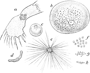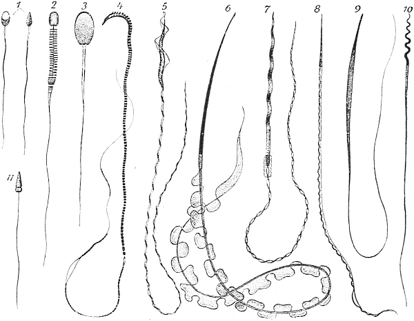 As yet, however, only one group of animals is known to behave demonstrably in this manner, the Diptera among insects; in all others the cell from which the germ-cells exclusively arise, the 'primordial germ-cell,' makes its appearance later in development, usually during embryogenesis and often very early in it, after the first few divisions of the ovum, but sometimes not till long after the end of embryogenesis, and not even in the individual which arises from the ovum,[Pg 411] but in descendants which arise from it by budding. This last case occurs especially in the colonial hydroid polyps, which multiply by budding. Here the primordial germ-cell is separated from the ovum by a long series of cell-generations, and the sole possibility of explaining the presence of germ-plasm in this primordial cell is to be found in the assumption that in the divisions of the ovum the whole of the germ-plasm originally contained in it was not broken up into determinant groups, but that a part, perhaps the greater part, was handed on in a latent state from cell to cell, till sooner or later it reached a cell which it stamped as the primordial germ-cell. Theoretically it makes no difference whether these 'germ-tracks,' that is, the cell-generations which lead from the ovum to the primordial germ-cell, are short or very long, whether they consist of three or six or sixteen cells, or of hundreds and thousands of cells. That all the cells of the germ-track do not take on the character of germ-cells must, in accordance with our conception of the 'maturing' of determinants, be referred to the internal conditions of the cells and of the germ-plasm, perhaps in part also to an associated quantum of somatic idioplasm which is only overpowered in the course of the cell-divisions.