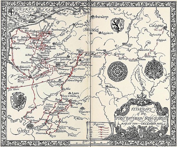 These volumes try to give soberly and with what truth is possible, the experiences of both battalions of the Irish Guards from 1914 to 1918. The point of view is the battalions’, and the facts mainly follow the Regimental Diaries, supplemented by the few private letters and documents which such a war made possible, and by some tales that have gathered round men and their actions.