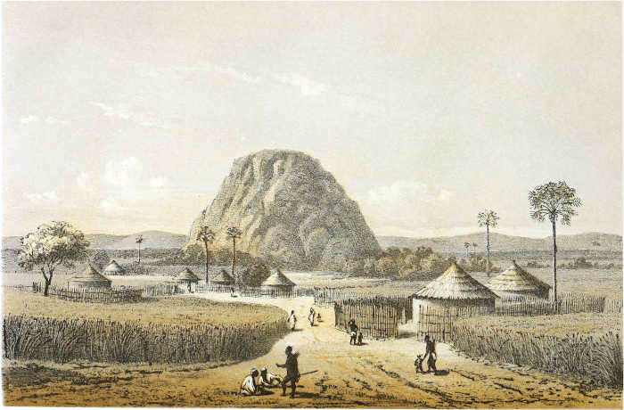 | The Conquering Tribe. — The Granite Hills. — Valley and Mountain-chain. — Isolated Mountain-groups. — Múbi. — The Surrounding Country. — Origin of the Fúlbe. — Bágma and Peculiar Structures. — Camels a Novelty. — Compliment paid to the Christian. — Mbutúdi. — Fúlbe Way of Saluting. — The Déléb-palm (Borassus flabelliformis?) and its Fruit. — The Granite Mount. — Simplicity of Manners. — Mount Hólma. — Legéro. — Edible Productions. — Ground-nut Diet. — Badaníjo. — Fertile Vale. — Temporary Scarcity. — Kurúlu. — Red and white Sorghum. — Saráwu Beréberé. — Comfortable Quarters. — Accurate Description. — Important Situation of Saráwu. — Tebu Traders. — Fair Negroes. — Market of Saráwu. — Saráwu Fulfúlde. — The Mansion. — The Blind Governor. — Principal Men in Yóla. — Mount Konkel. — Bélem. — An Arab Adventurer. — Rich Vegetation. — The young Púllo. — Old Mʿallem Dalíli. — Arab Colony. — A Country for Colonies. — Ruined Village (Melágo). — Gastronomic Discussion. — Máyo Tíyel. — The Bátta Tribe. — Sulléri. — Inhospitable Reception. | |